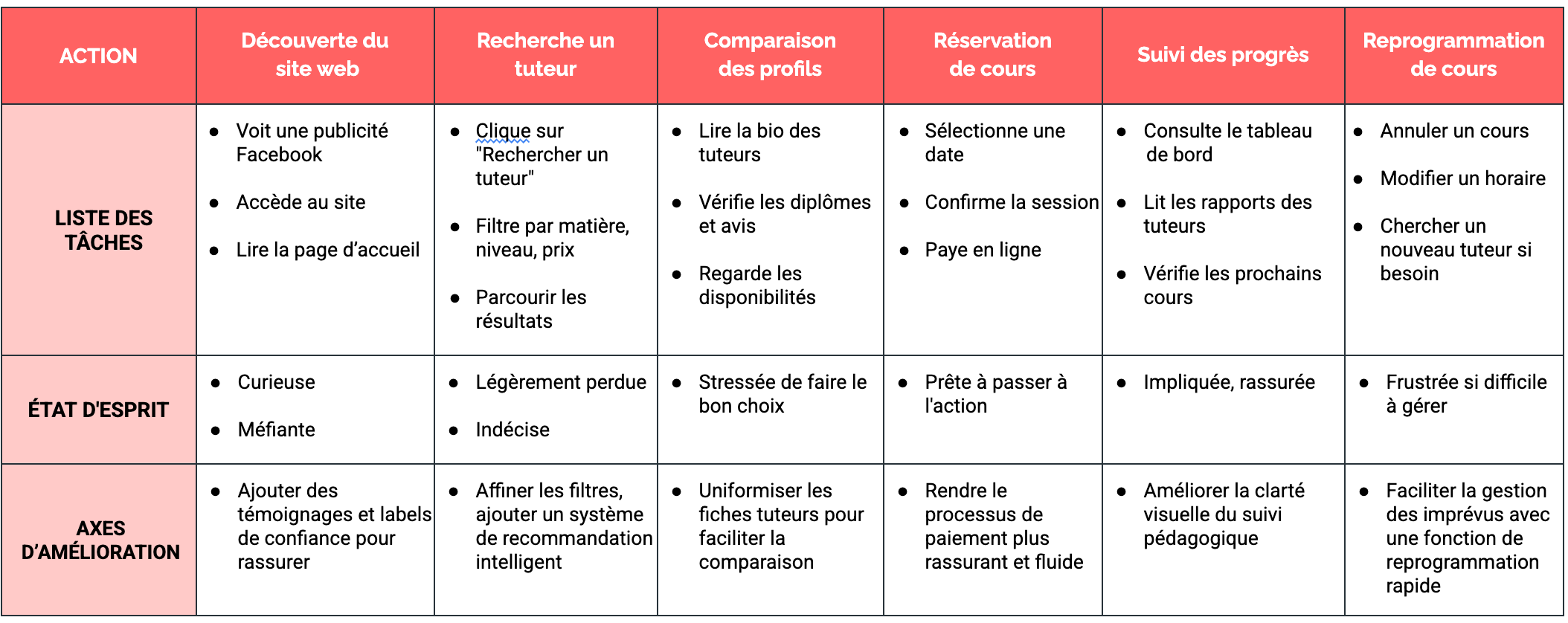 - Réalisation de recherches utilisateurs pour comprendre les besoins des parents et des tuteurs.
