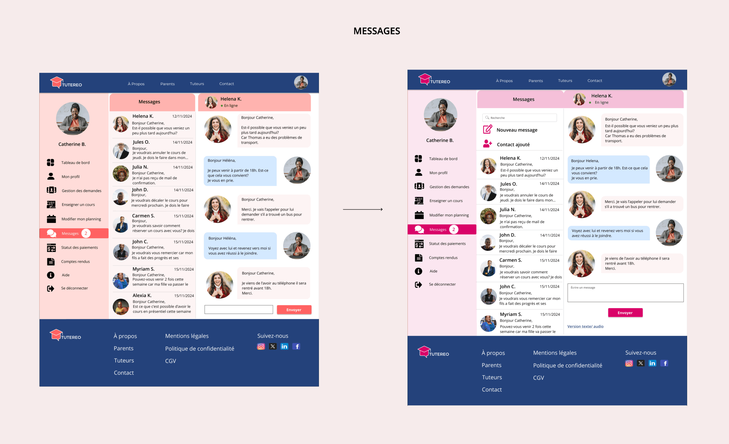 La conception de Tutereo en version desktop a permis de traduire les besoins des parents et des tuteurs en une plateforme claire et fonctionnelle. L’ensemble du processus, de la définition des parcours utilisateurs à la création des maquettes et tests d’utilisabilité, a révélé l’importance de trois axes majeurs : accessibilité, simplicité de navigation et feedback utilisateur.