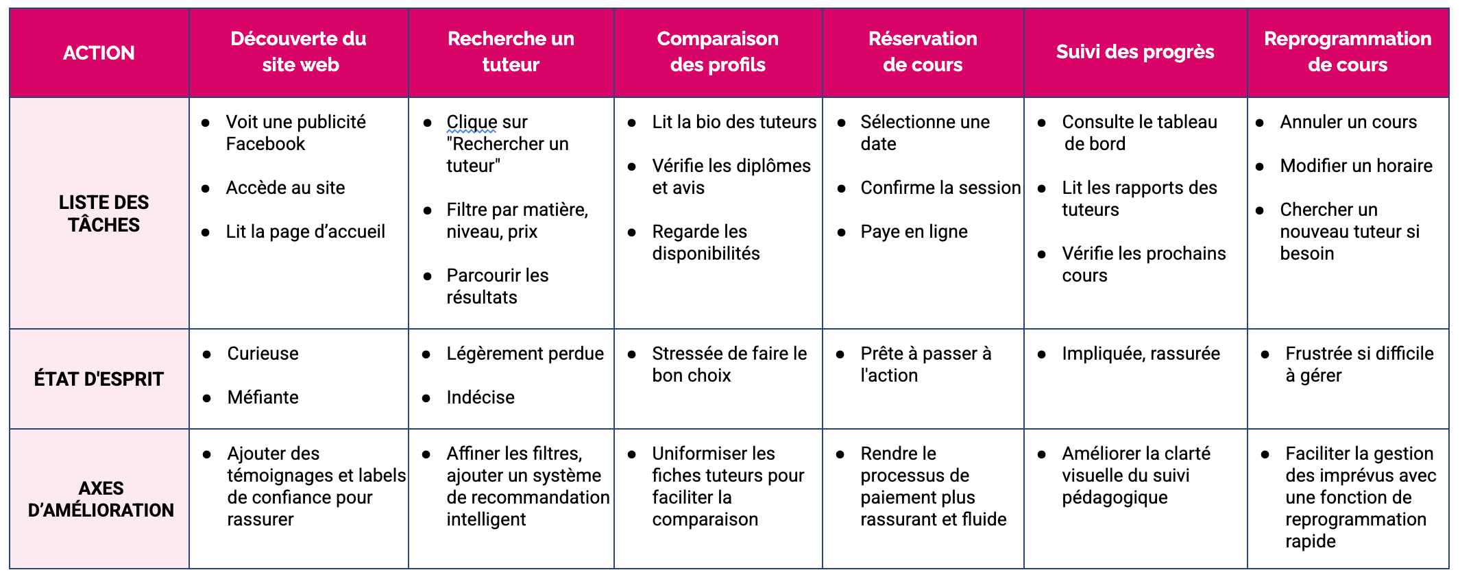 - Réalisation de recherches utilisateurs pour comprendre les besoins des parents et des tuteurs.