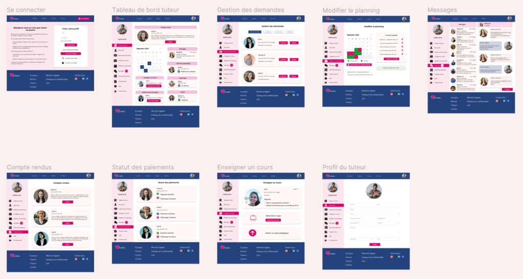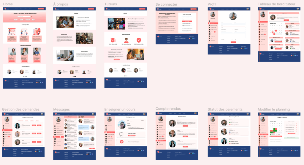 La conception de Tutereo en version desktop a permis de traduire les besoins des parents et des tuteurs en une plateforme claire et fonctionnelle. L’ensemble du processus, de la définition des parcours utilisateurs à la création des maquettes et tests d’utilisabilité, a révélé l’importance de trois axes majeurs : accessibilité, simplicité de navigation et feedback utilisateur.